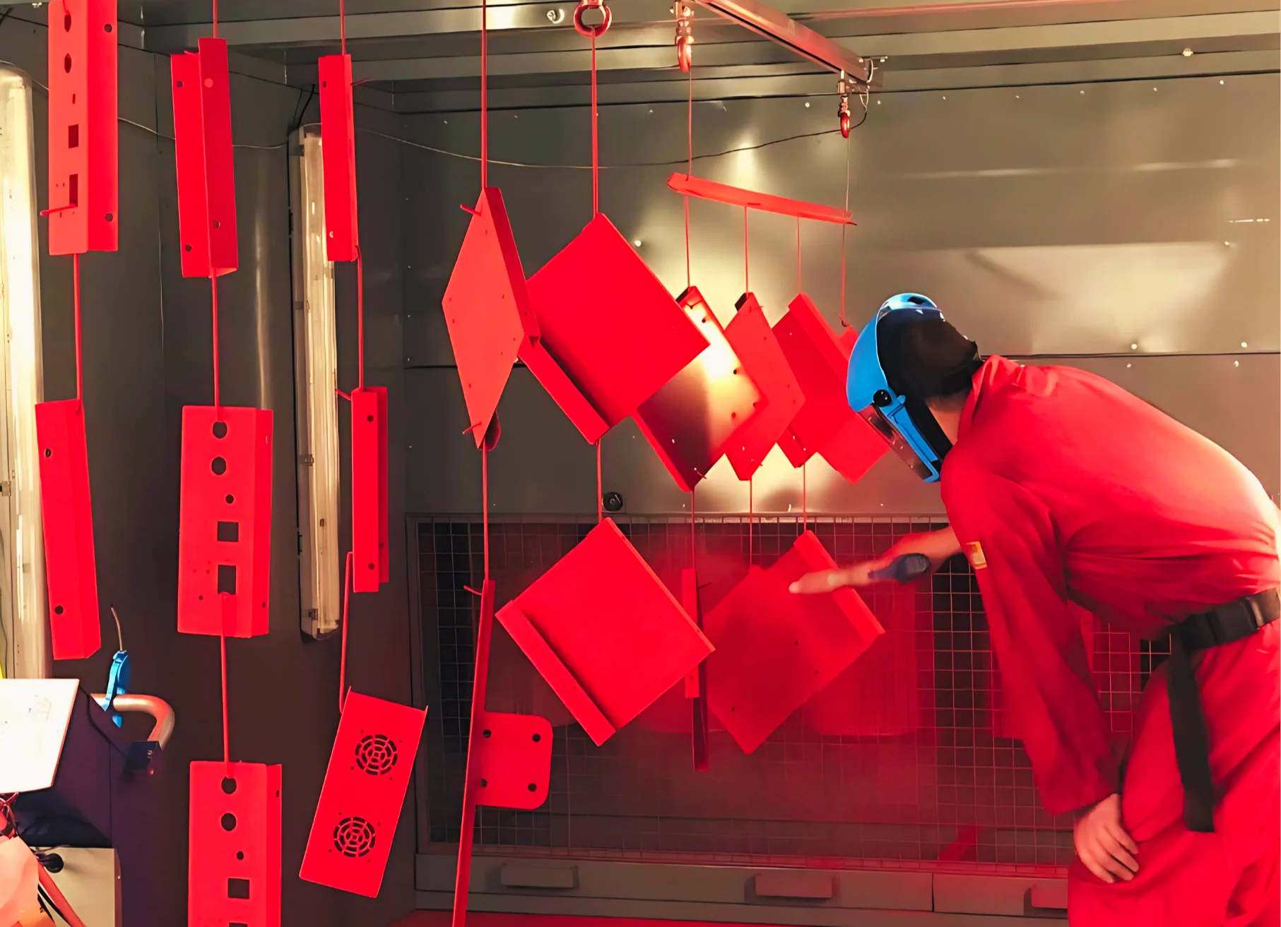 Coated items are heated in a curing oven to fuse the powder into a hard, durable finish, resistant to wear, corrosion, and fading.